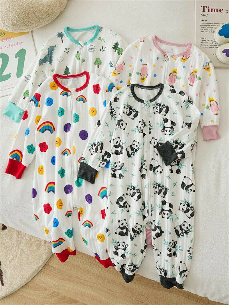 ロンパース 前開き 長袖 女の子 男の子 カバーオール ベビー 総柄 ファスナー つなぎ パジャマ コットン ベビー服 ロングパンツ スナップ 子ども ウエア 服 綿100% キッズ パジャマ つなぎ 送料無料
