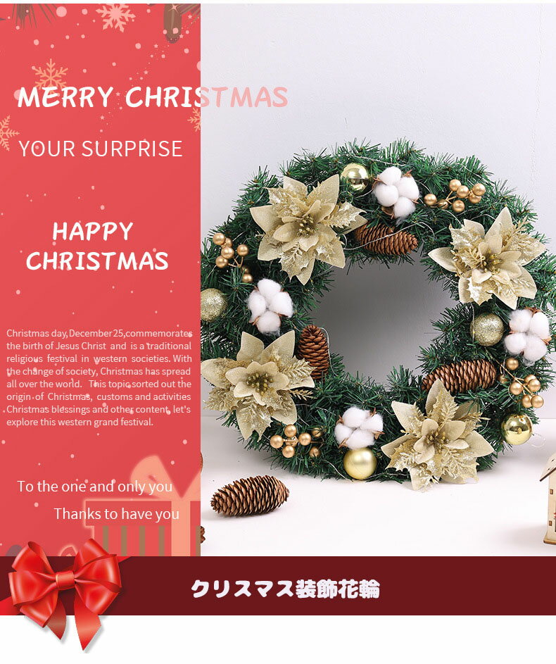 送料無料 クリスマスリース クリスマスリース手作りキット 北欧 部屋 玄関飾り おしゃれ イラストナチュラルリース 高級 豪華 上品 装飾 ドア 壁掛け クリスマス飾り 自然素材 直径40cm レッド 赤 装飾 かわいい クリスマスリース手作り