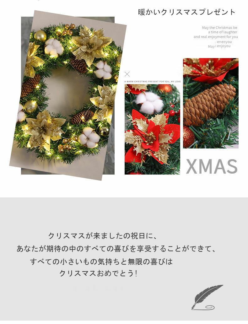 商品説明 カラー サイズ素材 2色写真参照/下表の備考欄をご確認くださいPVC 補足説明 サイズ直径40cm クリスマスリース天然素材の木に使用したクリスマスリース。飾るだけでお部屋を華やかに演出してくれますお部屋に、玄関に…お好きな場所に飾ってお楽しみください。ご自宅用としてもギフ用としても人気です。毎年人気のクリスマスリース!人気のカラーを集めました。お歳暮 クリスマスリース クリスマス グリーリース サライズ 備考 ●商品は一つ一つが手作り商品の為、商品画像と色や形・大きさが若干異なる場合があります。●天然素材を使用しておりますので、素材の一部が欠けてる状態でも使用可能ですのでごの上でご購入ください●リースのサイズは花や葉、リボなどを含め、リースの外側に広がった部分を入れた最大の直径です。(サイズに吊りヒモ部分は含みません)●商品写真はできる限り実物の色に近づけるよう撮影、加工しておりますが、撮影時の照明などやお客様のお使いのモニター設定、お部屋の照明等により実際の商品と色味が異なる場合がございますがごください。 送 ★運送業者:ヤマ運輸と佐川急便★3,980(税込)以上のご購入で送楽しめます。 メーカー希望小売価格はメーカーカタログに基づいて掲載しています