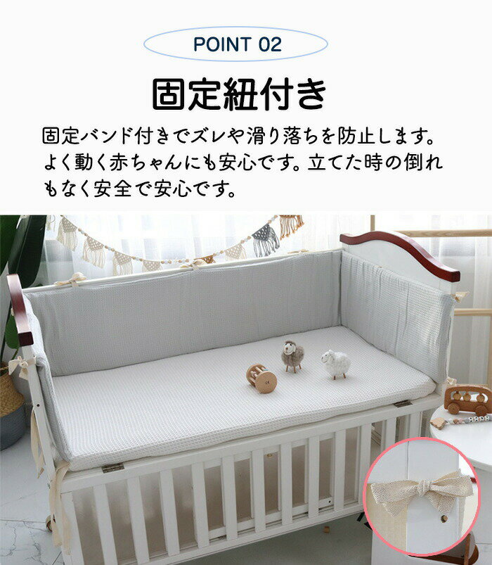 スペック商品内容:ベッドガード 素材: 綿100%カラー:アイボリー・ブルー・ライグー・ピクサイズ:4サイズ高さ28cm×長さ60cm高さ28cm×長さ120cm高さ28cm×長さ200cm高さ28cm×長さ240cm28cm×60cmの表記です。おすすめポイ厚手の綿素材でふっくらと柔らかく、ベビーベッドをしっかり全周カバー。赤ちゃんのぶつかり防止、転落防止、手足の飛び出し防止に優れ、優れた通気性で安全性と快適さを両立。シルで可愛いデザイで洗濯可能、お手入れ簡単。高級感のある仕上がりで品質も抜群、出産祝いや育児準備におすすめです。注意事項◆生産ロッ、入荷時期により柄や色の濃い薄い等、異なる場合が御座います。カラーにより同じサイズでも2〜3cm誤差が生じる場合がございます。◆海外製品のため縫製品質が日本とは異なり、縫製が雑、糸の始末ができていない場合もございますので予め御ください。◆使用時の破損や事故等につきましては責任を負いかねます。◆輸入品の為、輸の際に生じるキズ・汚れ・箱潰れがある場合がございますが新品です。◆あくまで画像はイメージですので、商品改良の為パッケージや一部仕様が少し変更になる場合もございます。◆会社概要・お買い物ガイドに他にも詳しく記載しておりますので事前に確認していただくことをお勧めいたします。◆商品画像はライの下で撮影しており、ご覧いただくモニター等の違いで画像と実商品の色合いが若干異なる場合がございますので、予めご下さい。◆測定したサイズは素人採寸のため、1〜3cm程度の誤差が生じる場合があります。◆ご使用のパソコ環境により、商品画像と実際の商品の色味とが多少異なって見える場合がございます。◆販売価格を抑えるため弊社では簡易包装でのとなります。あらかじめごください。原産国中国(日本の企画により厳格に生産されています。)商品安心保証初期不良の場合は返品・返金・交換対応させていただきます。商品到着より7日以内に、弊社までご連絡いただきますようお願いいたします。お使用方法がわからない等、何かお困りの問題、ご不明な点がありましたら解決策をご案内します。お気軽にメ一ルでご連絡くださいませ。◆以上の内容を十分にご理解いただきました上でご注文をお願いいたします◆検索関連キーワード(商品の説明ではありません):ベビーベッド ガード バパー 三方囲いタイ リニューアル かわいい ぶつかり防止 ベビーベッド 厚みたっぷり ベビーベッドガード クッショ ベビーベッ用 ごっつん防止 ベビー 赤ちゃん ベッドガード ベビー ベッドガード 綿 ベッドバパー 洗える 転落防止 手 足 飛び出し防止 ベッドフェス ぶつかり防止 ケガ防止 通気性 ベッドガード サイドガード クッショガード 衝突 防止 保護 新生児 赤ちゃん ベビー シル かわいい おしゃれ 出産お祝い 出産準備 育児 男の子 女の子 ギフ 北欧風 キッズルーム 子供部屋飾り おすすめ 高級感 モダ 高級 無地 高品質 メーカー希望小売価格はメーカーカタログに基づいて掲載しています