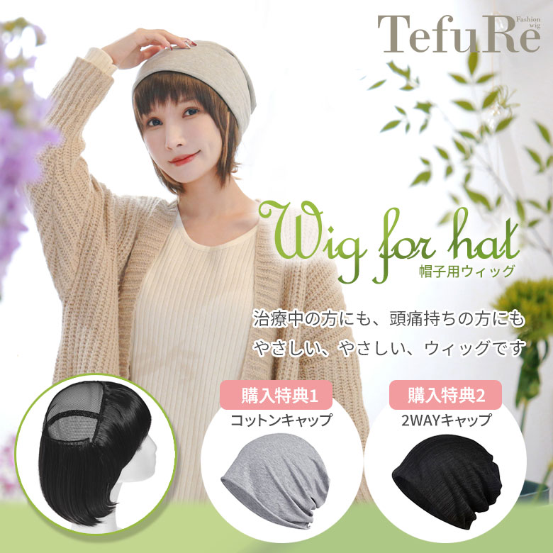 【帽子2個付き】 ウィッグ付き 帽子 帽子付きウィッグ 帽子用ウィッグ ショート 医療用ウィッグ テフリ 富士達 医療用 脱毛症 抜毛症 抗がん剤治療中の方にも最適 送料無料