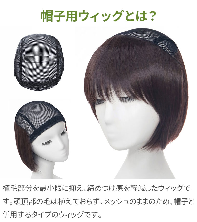 TefuRe(テフリ)帽子付きウィッグ 帽子用ウィッグ ショート (ウィッグ付き帽子) 帽子の下にかぶるウィッグ・気軽に簡単に使えるウィッグ帽子用ウィッグは帽子の下にかぶる「帽子ウィッグ」です。植毛部分を最小限に抑えてフルウィッグのような締め付け感を軽減しています。頭頂部の毛は植えていないので、帽子と併用して使うウィッグです。長時間の着用でも優しい着け心地で快適に過ごせます。さらに2種類の帽子がついているので、届いてすぐにお使い頂けます。抗がん剤治療中や脱毛症、抜毛症、おうち時間、入院中のお見舞い時やお買い物、テレビ電話の際などにとっても便利なウィッグです。【素材】耐熱性高品質ファイバー(耐熱温度:160度まで)【サイズ】フリーサイズ(頭周り約56cm)【長さ】(前髪) 生え際〜毛先まで約8cm(横髪) 生え際〜毛先まで約10cm(後髪) 生え際〜毛先まで約10cm【セット内容】前髪パーツ/本体ウィッグ/ビニールバッグ/コットンキャップ/2WAYキャップ【人工スキン】なし【カラーについて】 ・ナチュラルブラック ・ブラウン ・ライトブラウン ・ブラウン/ベージュ(明るいブラウンのインナーカラー) モニターや機種によってカラーの再現力が異なります。あらかじめご了承下さい。【詳細】コテOK・ヘアアイロンOK・手洗いOK【免責】・サイズ調整用のアジャスターの留め具・紐が見えてしまうことがあります。帽子で隠してお使いください。・初めてブラッシングをする場合、毛が抜け落ちますが、品質には問題ございません。・手作業でカットしておりますため、同一商品でございましても毛の長さやサイズなど異なる場合がございます。・商品の色味は出来るだけ現物に近い色を再現するように努めておりますが、撮影環境やモニター環境により色の見え方に差異がございます。・入荷時期・ロットにより素材(繊維)、お色味、仕様などに若干の変動が出る場合がございます。・購入特典の内容や変更、ご指定は出来ません。・梱包・商品特性上、前髪パーツがベースのウィッグやネット部分へ引っかかってしまっている場合がございます。お手元に届きましてパーツが見受けられない場合、ベースのウィッグに付いていないかご確認をお願いいたします。上記予めご了承ください。 メーカー希望小売価格はメーカーサイトに基づいて掲載しています 関連検索:医療用ウィッグ 帽子付き かぶるだけ 帽子付きウィッグ ウィッグ付き帽子 髪付き帽子 毛付き帽子 女性用 富士達 ウィッグ 医療用ウィッグ 医療用かつら 医療用カツラ 抗がん剤 お見舞い 退院祝い ギフト 子供 ティーン キッズ 10代 20代 30代 40代 50代 60代 助成金 母の日 円形脱毛症 抜毛症 ブラウン ブラック インナーカラー おすすめ 安くて自然 便利 薄毛隠し 白髪かくし 白髪隠し 締め付けない 自宅用 安い医療用ウィッグ「もっと気軽に、簡単にウィッグを使いたい!」という方に。 脱毛症やがん治療中の方々の医療用ウィッグとしてもおすすめです。 2種類の帽子がついていますが、お好きな帽子でもご使用いただけるデザインで、快適さと実用性を両立。 本体の半分以上がメッシュ構造でできており、抜群の通気性を実現。 さらに、簡単に素早く着用できるので、忙しい日常の中でも気軽にお使いいただけます。ベースのネットは通気性に優れたメッシュ素材。 夏でも蒸れにくいので、オールシーズンお使いいただけます。帽子をかぶるだけでメッシュ部分が隠れ、帽子の下から自然に髪がのぞくスタイルが簡単に完成! フルウィッグと比べて軽量で、締め付け感も少なく、より快適な着用感を実現しました。嬉しい帽子付き!コットンキャップとネックウォーマーにもなる2WAYキャップ、計2個の帽子が付いているので、届いてすぐご利用頂けます。前髪はクリップ式で簡単に取り付け、取り外しができます。 リラックスしたいときは前髪を外位置を変えて眉上ぱっつん前髪にしたり、アレンジも自由自在です。サイズ調整ができるのもポイント。ご自身の頭のサイズに合わせて調節できるので安心感も抜群です。帽子と同じ感覚でサッとつけてパッとキマる帽子用ウィッグ。 フルウィッグに疲れてしまった時や、ちょっとそこまでのお出かけにも便利に使えるウィッグです。定番色に加えて明るめブラウンや、インナーカラーも揃えた4色展開。 スタイル TefuRe(テフリ)帽子付きウィッグ 帽子用ウィッグ ショート (ウィッグ付き帽子) 帽子の下にかぶるウィッグ・気軽に簡単に使えるウィッグ 帽子用ウィッグは帽子の下にかぶる「帽子ウィッグ」です。 植毛部分を最小限に抑えてフルウィッグのような締め付け感を軽減しています。 頭頂部の毛は植えていないので、帽子と併用して使うウィッグです。 長時間の着用でも優しい着け心地で快適に過ごせます。 さらに2種類の帽子がついているので、届いてすぐにお使い頂けます。 抗がん剤治療中や脱毛症、抜毛症、おうち時間、入院中のお見舞い時やお買い物、テレビ電話の際などにとっても