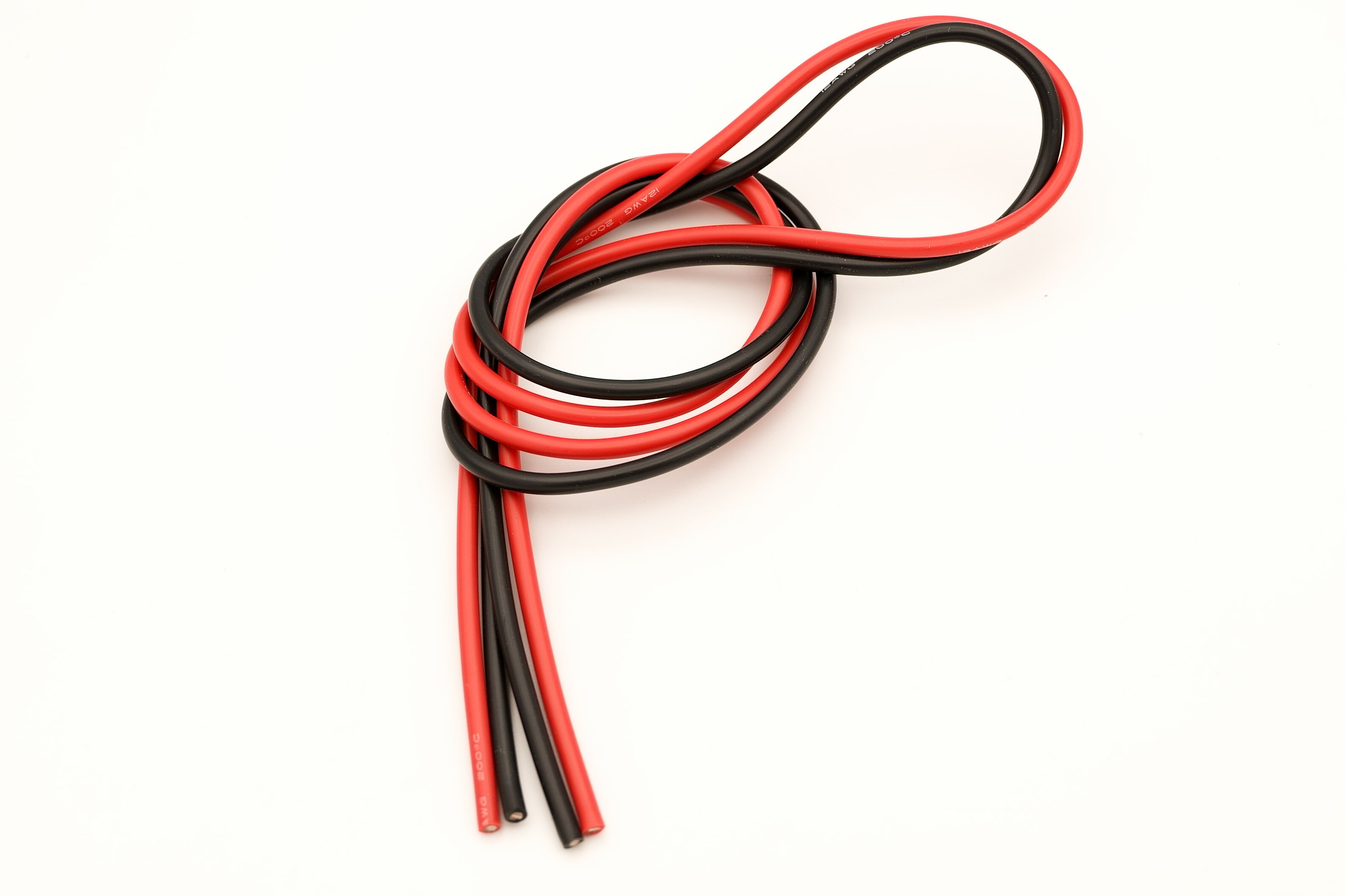 12AWGワイヤー ご注文サイズのケーブルm数2本(0.5mご注文の場合は、0.5m赤・0.5m黒 各1本) 軟らかく取り回しが楽なワイヤーです。 耐熱、耐油ワイヤーです。 【商品明細】 ・ケーブルサイズ:12AWG(3.5sq相当) ・導体:錫メッキ銅線 ・外皮素材:シリコーン 直径:約4.6mm ・温度範囲:-60°C-200°C ・電圧レベル:600V ・重量:約98g(1m2本の場合) ・数量:2本(赤線・黒線 各1本)