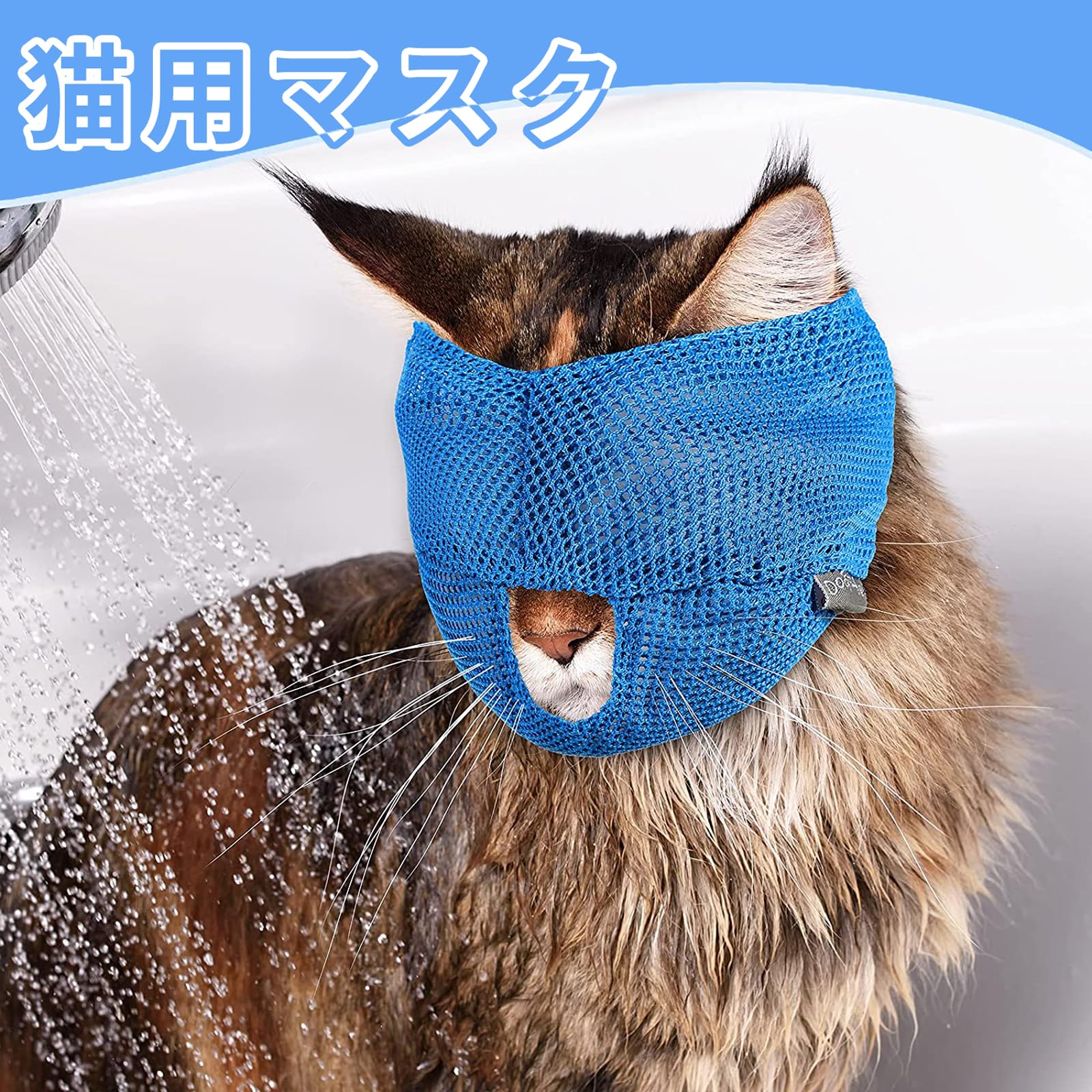 【送料無料】Doyime 猫用マスク ペット口輪 猫用 爪切り 耳掃除 マスク ペット 目隠し 保護マスク 通気性 噛みつき防止 やわらか生地 拾い食い防止 猫のマズル 爪切り補助用 キャットマズル 猫用マスク 猫 お風呂 暴れる猫ちゃん用 Lコード 青 ペット用 (L, ブルー)