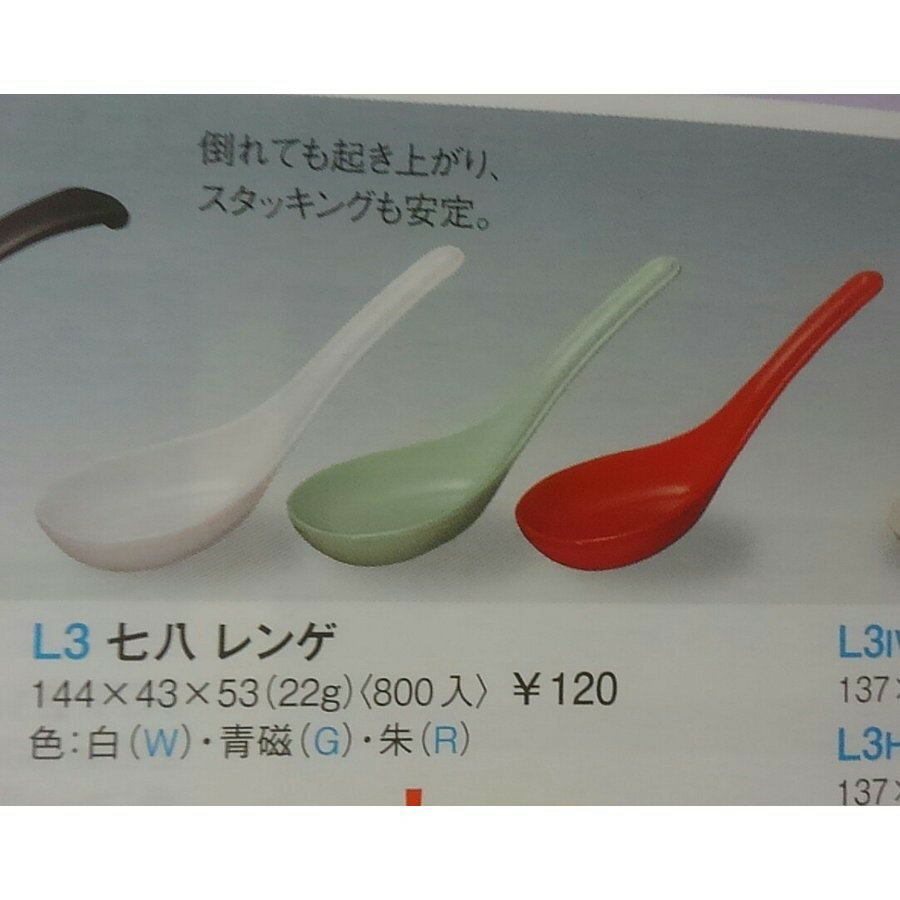 レンゲ マルケイの七八レンゲ1本 L3 白 中華 メラミンレンゲ 国際化工 ポイント消化 平らな場所なら、どの方向からでも起き上がります。安定したスタッキングができる設計。適度な重量感があります。 人気の商品です!! 大量購入可!!! マルケイ L3七八レンゲ白1本です。 メラミン樹脂。 国際化工。 持ちやすい人気の定番商品!! 平らな場所なら、どの方向からでも起き上がります。安定したスタッキングができる設計。適度な重量感があります。(写真参照) 通常販売価格は、1本あたり129円(税込)の商品です。 サイズは、約144×約43×約53mm。材質はメラミン。1本の重量は約22g。耐熱温度90℃。一時的には耐熱温度120℃OK。 自動洗浄機、食洗機使用OK。電子レンジ使用不可。煮沸は不可だが沸騰水には入れられます。 2