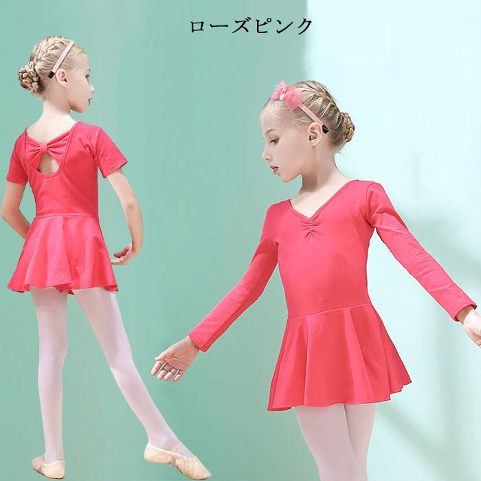 バレエ レオタード 子供服 キッズ用 バレエ用品 半袖 長袖 5色 バレエレオタード ダンス衣装 スカート付き バレエ ダンス ウェア ジュニア服 体操 フィットネス ステージ 練習着 レッスン着 子供レオタード ピンク パープル ブルー ローズピンク ライトブルー 110-160cm
