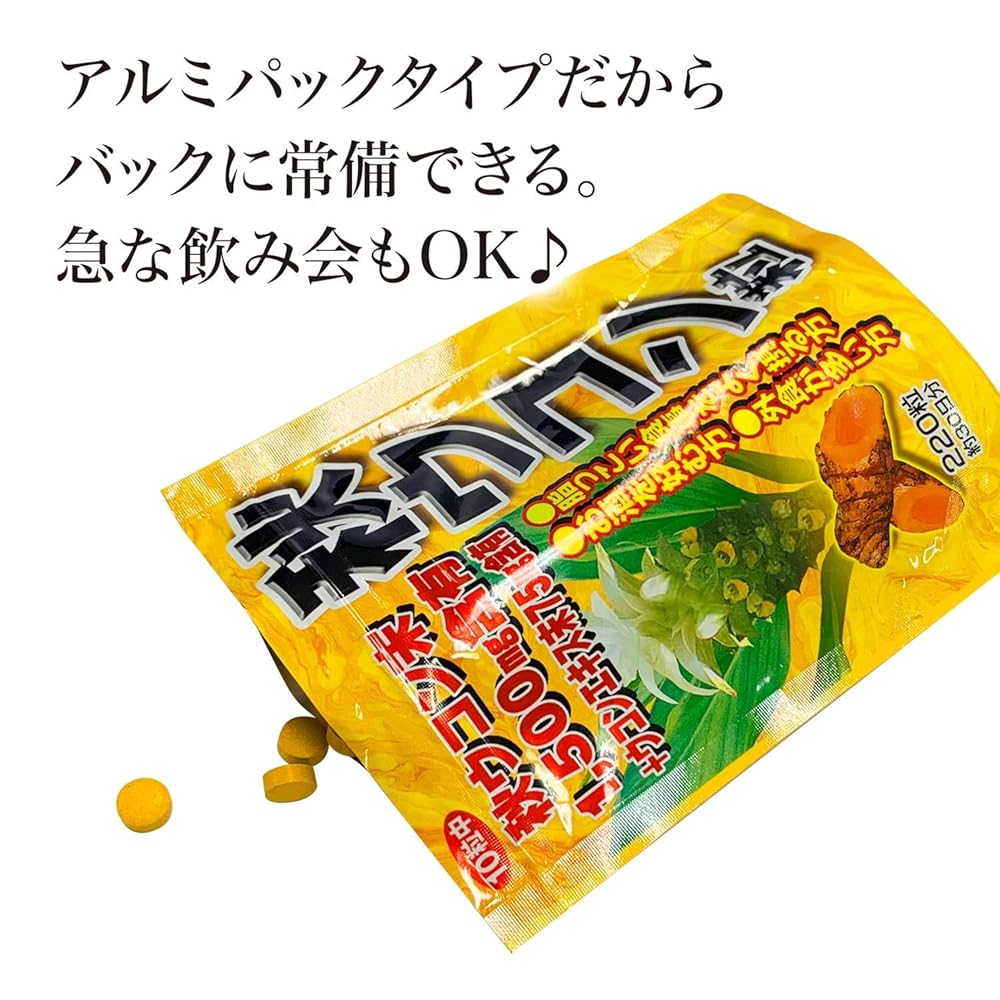 商品情報 商品の説明 商品紹介【商品説明】~秋ウコンで皆様の毎日の健康管理に~ウコンはショウガ科の植物で、根茎に黄色の色素成分クルクミンを含みます。本品は、秋ウコンと更にそこに含まれる貴重な健康成分を手軽に摂取できるように粒タイプにした健康補助食品です。お酒を飲む機会の多い方脂肪分の多い食事が好きな方などの健康管理にお役立てください。【ご利用上のお願い】・1個あたり約22日-30日を目安にお召し上がりください。・原材料名をご参照の上、食品アレルギーのある方はお召し上がりにならないでください。・アレルギー体質等まれに体質に合わない方もいますので、お召し上がり後体調のすぐれない時は中止してください。・食生活は、主食、主菜、副菜を基本に、食事のバランスを。【お召し上がり方】・健康補助食品として、一日7-10粒を目安に2-3回に分け、水などと共にお召し上がりください。・最初は少量よりお召し上がりください。【保存上のお願い】・吸湿しやすい成分が含まれているため、開封後はチャックをしっかりと閉めて保存してください。・小さなお子様の手の届かない所に保存してください。【保存方法】・直射日光を避けて、涼しい所で保存してください。使用上の注意●約22~30日を目安にお召し上がりください。●原材料名をご参照の上、食品アレルギーのある方はお召し上がりにならないでください。●アレルギー体質等まれに体質に合わない方もいますので、お召し上がり後体調のすぐれない時は中止してください。●食生活は、主食、主菜、副菜を基本に、食事のバランスを。原材料・成分秋ウコン末、乳糖、ウコンエキス末 セルロース、グリセリン脂肪酸エステル、微粒二酸化ケイ素、(一部に乳成分を含む) 主な仕様 本品は、秋ウコンと更にそこに含まれる貴重な健康成分を手軽に摂取できるように粒タイプにした健康補助食品です。お酒を飲む機会の多い方、脂肪分の多い食事が好きな方などの健康管理にお役立てください。[国内製造品] 内容量 : 55g(1粒250mg×220粒) / 商品サイズ (幅×奥行×高さ) : 100×20×150mm 製造時含有量 : [本品8粒(2.0g)中] 秋ウコン末:1,500mg、ウコンエキス末:75mg 栄養成分 : [本品8粒(2.0g)中] 熱量:9.0kcal、たんぱく質:0.12g、脂質:0.05g、炭水化物:2.02g、食塩相当量:0.004g 原材料 : 秋ウコン末、乳糖、ウコンエキス末/セルロース、グリセリン脂肪酸エステル、微粒二酸化ケイ素、(一部に乳成分を含む)