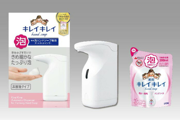【送料込・まとめ買い×2点セット】ライオン キレイキレイ 薬用 泡 ハンドソープ 専用 オート ディスペンサー 本体 + ハンドソープ詰め替え 200ml 非接触タイプ(4903301321347)