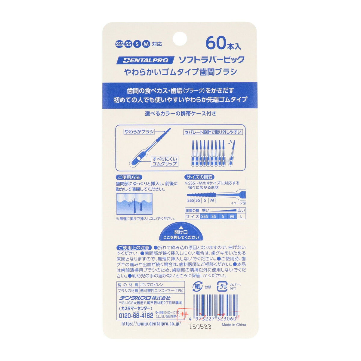 商品名:デンタルプロ ソフトラバーピック 60本入 ※色は選べません内容量:60本JANコード:4973227323060発売元、製造元、輸入元又は販売元:デンタルプロ商品番号:101-4973227323060商品説明●やわらかい使い心地のゴムタイプ歯間ブラシ●1本でSSS・SS・S・Mの4タイプに対応●すべりにくいゴムクリップ●選べるカラーの携帯ケース付き広告文責:アットライフ株式会社TEL 050-3196-1510 ※商品パッケージは変更の場合あり。メーカー欠品または完売の際、キャンセルをお願いすることがあります。ご了承ください。