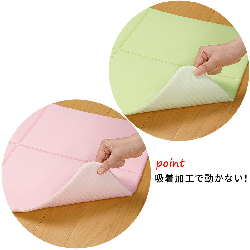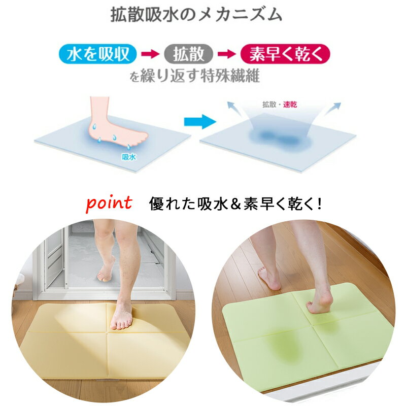 【ご購入前に】 決済・配送方法に係るご利用ガイドをご確認の上、ご注文ください。 https://www.rakuten.co.jp/atelier-eirene/info2.html#shiharai ●代金引換決済 決済方法を代金引換決済選択の場合、メール便はご利用出来ません。 代金引換決済は、宅配業者を通じてのお支払いの為、宅配便配送のみとなり、 【商品代金+地域別送料+代金引換決済手数料】がお支払い金額です。 当店からの注文確認メールにて、商品代金引換決済総額をご確認ください。 ●セブンイレブン決済・ローソン決済(前払) 商品代金合計+決済手数料:210円〜が、お支払い合計金額になります。 楽天市場システム上、楽天市場自動で配信される受付確認メールでは、手数料等(210円〜)は含まれておりません。 後程、件名:【お支払い番号のお知らせ】より【払込票番号(収納番号)・お支払い総額(ご注文金額+手数料)】をメールにてご連絡致します。 ご確認の上、お支払い手続きください。■商品詳細 商品情報 ★★バスマット★★ ●特殊な繊維構造で、吸水性・拡散速乾性に優れています。 ●踏むだけで水分を吸収・拡散します。 ●マットの裏面が床にピタッと吸着するのでズレません。 ●洗濯機(ネット使用)でお洗濯できます。 ●折り目に沿ってたためる。 ●立てて干したり、場所をとらず干すことができます。 ●こだわり品質の日本製です。 【サイズ】50×70cm(厚み11mm) 【材質】表面:ポリエステル 芯:ウレタンフォーム 裏面:ポリエステル100% 吸着:アクリル樹脂(カテキン入り) 【原産国】:日本 【返品条件等販売に関する重要事項】 ■ご注文キャンセルに関して ご注文確定後のキャンセル、商品発送後の返品・交換は一切お受けしておりません。 ■お客様都合の場合のご返品・交換 注文ミス(色・サイズ・機種などの仕様間違い)又は、色が気に入らない、等のお客様都合の返品・交換は受け付けておりません。 ■初期不良品の場合のご返品・交換 商品管理には十分留意しておりますが、万が一商品の不良・破損・誤納品がございます場合、 誠にお手数をおかけいたしますが、商品到着日より7日以内にご連絡ください。7日以上経過した場合や、当店からの連絡確認が取れない場合は、返品・交換を承れません。 【連絡先】購入履歴よりお問い合わせ ■クーリングオフについて クーリングオフは、訪問販売において適用される制度です。 当サイトを含めた通信販売にクーリングオフは適用されません。 ■ご確認 ※製品の仕様は改良などのため事前予告なしに変更することがあります。 ※モニターの仕様によって実際の色とやや異なって見える場合があります。