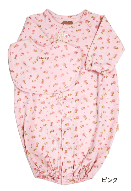Souris スーリー 日本製 スタイ付き2WAYドレス ツーウェイオール 2WAYオール カバーオール ロンパース 長袖 スタイ よだれかけ 花柄 アイボリー ピンク 新生児 出産準備 出産祝い ベビーギフト プレゼント ゆうパケット全国送料無料! 2025年今春新作!