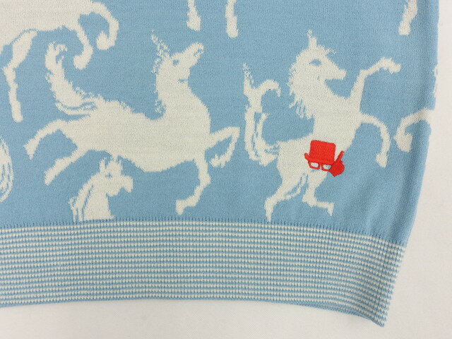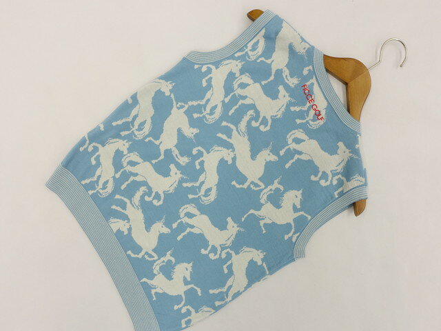 定価\13,000 新品タグ付 FICCE BY DON KONISHI 洗えるニットジレベスト ゴルフ M ライトブルー地 アイボリー ホース 【メール便可】 【中古】