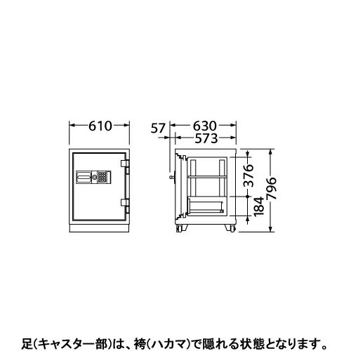 テンキーボタンによる暗証番号と鍵で、扉を開閉するタイプの耐火金庫です。 暗証番号は、任意に変更が可能ですので、ご希望の暗証番号での使用をされたい方、店舗・事務所などで、金庫を使用される担当者が代わる時には番号を変えたいという方に、お薦めです。 暗証番号と鍵で開錠する二重ロック式ですので、安心してご使用いただけます。 ※暗証番号には、電話番号・誕生日等のわかりやすい番号を設定されないよう、ご注意ください。 ■基本仕様 ■型式:テンキー式耐火金庫(CS-90E) ■外寸:幅610×奥行き630×高さ796mm ■内寸:幅450×奥行き355×高さ560mm ■重量:185Kg ■内容量:90L ■カラー:ライトウォームグレー ■付属品:鍵2本・引出し用鍵2本・取扱説明書 ■装備:棚板1枚、鍵付き引出し1個、引出し内寸(幅386×奥行き280×高さ120mm) ■性能:一般紙用2時間耐火試験合格 ■開錠方法:暗証番号+鍵 暗証番号とシリンダー錠で開扉すれば、シリンダー錠で施錠するまで、扉はくり返し開閉することができます。 営業開始時に開錠し、営業中はくり返し開閉できるようにしておき、営業終了時に施錠したいというお客様向けの仕様となっております。 代金引換不可 ※耐火金庫はメーカー直送の為、「代金引換」が出来ません。 → 『商品のお届け方法について』 ※この商品は、【送料・搬入設置費】の見積りが必要です。 メーカー希望小売価格はメーカーカタログに基づいて掲載しています ● 関連商品 同サイズのダイヤル式 もう少し大きいタイプ 品質重視【日本製】 耐火+こじ開けられにくい【強化型】 CS-90 CS-91E KC51-2E CSG-90E 特徴 テンキーボタンによる暗証番号と鍵で、扉を開閉するタイプの耐火金庫です。 暗証番号は、1桁から10桁まででお好きな番号にお客様にて設定可能です。 電池ボックスが、テンキー部の右側にありますので、金庫を閉じたまま電池の交換が可能です。【単三乾電池4本】 いたずら防止機能搭載で、暗証番号を5回間違えると、一定時間操作が出来なくなります。 耐ドリルシリンダー錠搭載で、電動ドリルによる破壊に耐える構造を施しています。 ※この商品は、火災から収納物を守る目的で作られた「耐火金庫」です。 【 工具等の破壊に対しては強くありません 】 扉のこじ開けや破壊から収納物を守る「防盗性能」も重視される場合はこちら。 >>テンキー式強化型耐火金庫 金庫診断士推奨品 型式 テンキー式耐火金庫(CS-90E) 外寸 幅610×奥行き630×高さ796mm 内寸 幅450×奥行き355×高さ560mm 重量 185kg 内容量 90L 付属品 鍵2本・引出し用鍵2本・取扱説明書 装備 棚板1枚、鍵付き引出し1個:引出し内寸(幅386×奥行き280×高さ120mm) カラー ライトウォームグレー 性能 一般紙用2時間耐火試験合格(2時間で1010℃まで加熱し、庫内温度177℃以下で中に入れた新聞紙が判読可能) 開錠方法 暗証番号+鍵 製造国 タイ メーカー 株式会社エーコー (EIKO) ◇商品画像には、防犯上の観点から、カンヌキの本数と場所は表示しておりません。 ◇断熱材特性により質量・内外寸法に若干の違いが生じる場合がありますが、性能に違いはありません。 ◇サイズは最も出っ張った部分を含めた最大寸法です。 ◇性能向上の為、通知なく仕様を変更することがあります。 ◇色については画像解像度の特性上、実際の商品とは多少異なる場合があります。