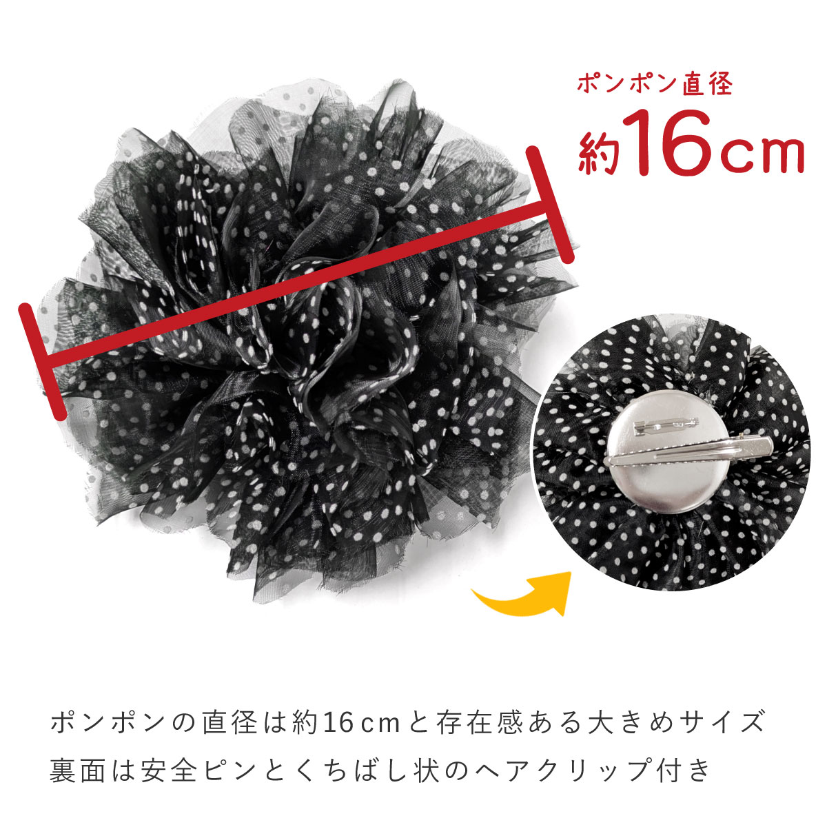 【エントリーでポイント10倍】大きめ ポンポン 飾り ふわふわ 推し活 小物 アイドル ダンス 発表会 ポップな水玉 可愛い 6y シフォン ドット柄 レディース ドレス 髪飾り ステージ 衣装 コサージュ 卒業式 卒園式 入学式 女の子 七五三 プレゼント 即納【メール便送料無料】