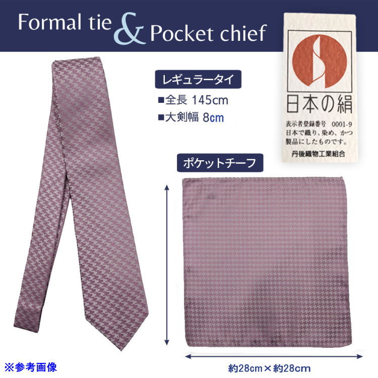 フォーマルシーン・パーティシーンを ドレスアップセットでお洒落に! ネクタイ&ポケットチーフ しっかりとした国産(京都)高級生地を使用し、 国内で縫製したハイクォリティ商品です。 8色展開中 メール便送料無料(代引・日時指定不可) 商品詳細 内容 フォーマルネクタイ ・ ポケットチーフ付 色 パールホワイト 柄 千鳥格子 素材 絹100% サイズ・仕様 ネクタイ: 大剣幅約8cm 長さ約145cm 小剣通し付 チーフ: 約28cm×28cm 日本製 ご注意 ・この商品はメール便のみの発送です。 ※代引および日時指定はできません。 ※他商品と同梱できません。