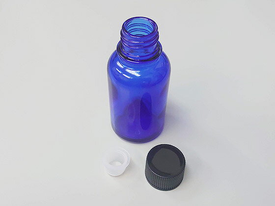 ※下記のサイズはガラス瓶のみのサイズです。 本 体 :ソーダガラス パーツ:ポリプロピレン 容 量 :30.0ml 口外径:17.5mm 口内径:12.8mm 胴 径 :35.5mm 高 さ :75.8mm ■オプション:中栓約30ml入るコバルトブルーのガラス瓶です。 キャップは2パターン(黒・白)揃えました。用途に合わせてお選び下さい。 キャップにはパッキン(ポリプロピレン製)が付いています。 オイルなどをブレンドした後もキャップの色で区別しやすく便利です。 薬品の仕分けなどにもご利用下さい。試薬用にもお使いいただいている遮光瓶です。 ■キャップはポリプロピレンです ■中の素材をしっかり守ります! ■この商品には中栓をオプションでつけることができます。 中身などが飛び出しにくいので、安心して保存ができます。 中栓ご希望の方は「買い物かご」のボタン上にある オプション:中栓をつけるにチェックを入れてください。