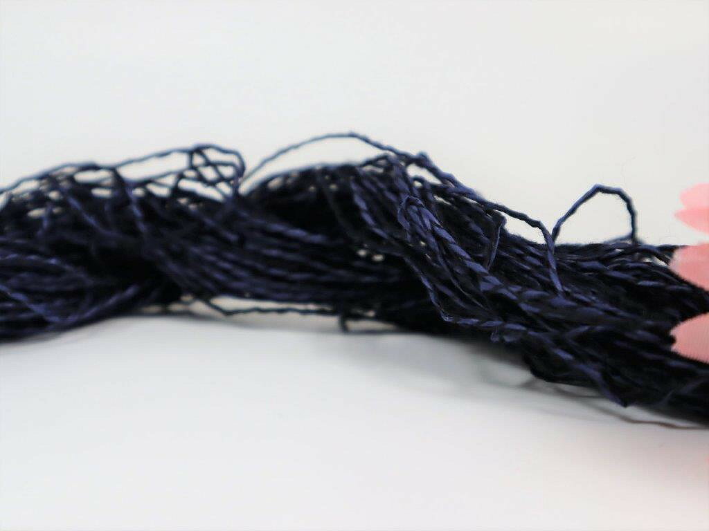 素材は和紙50%、バンブー50%です。お色は紺色です。太さは;100g約340mです。中細タイプです。織り糸、ニット糸にお使いいただけます。タペストリー、バックにも最適です。糸にハリ感があります、洗濯も大丈夫です。(染色もしていただけます)追加可能です。同梱可能です。発送方法;定形外郵便又は宅配便。カラー 濃紺 素材 和紙50%、バンブー50% 太さ 中細