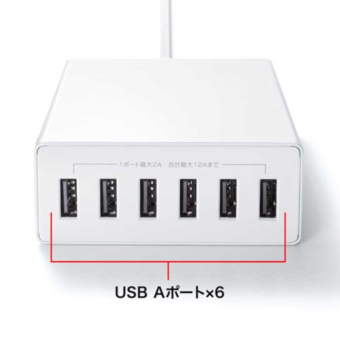 USB充電器(6ポート・合計12A・ホワイト) ≪サンワサプライ≫ ACA-IP67W 【送料無料】【離島 発送不可】