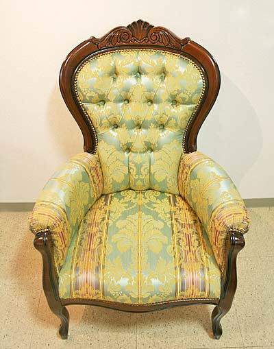 イタリア・ヴェローナ近郊の有名な高級チェア専門メーカーから直輸入した素敵なハイバックチェアです。 男性がお掛けになっても頭の後ろを支えてくれるほど高い背もたれにはが特徴。 その背もたれには伝統的デザインの彫刻が施され、クラシカルで高級感ある雰囲気。 長く細いネコ脚は大変エレガントなシルエットで、良質の素材を用いた熟練職人の技術の高さを物語ります。 高級感ある色調の張り地はインテリアのなかでもインパクトがあり、お部屋の主役になってくれることでしょう。 座り心地はイタリアクラシック家具ならではの固めの仕上がりで、長時間お掛けいただいていても疲れません。 伝統的なチェア専門メーカーならではのしっかりした作りで、末永く愛用していただける一品です。 サイズ:幅73cm 奥行き66cm 高さ108cm(座面41cm) 家財宅急便送料3割引 [沖縄県・北海道・九州・離島地域] は『送料無料』や送料割引キャンペーンの対象外です、別途送料がかかります。 こちらは開梱から設置、梱包材持ち帰りの完全サービスです。お客様の手を煩わせることなく、家具の納品が可能です。 ★輸入品のため、小さなスレ・小傷・若干の枠のズレなどがございます。 ご了承のうえ、お買い求めください。 ★商品写真はサンプル商品を撮影したものです★ 柄の出方や色合いなど、仕上がり具合に若干の個体差がございますので掲載写真は 「全体的な商品イメージ」 としてお考え下さい。 インターネット上の写真では、実物の色や質感までを完全に表現することができません。 「写真のイメージと違う」という理由でのクレームはご遠慮下さい。【送料について】注文前でもお見積いたしますのでお問い合わせ下さい [沖縄県・北海道・九州・離島地域] は『送料無料』や送料割引キャンペーンの対象外です、別途送料がかかります ★複数品のご注文、当店送料表適用外の送料(直送・別送、大型品、設置付などの特別配送)など、ショッピングカートで自動計算できない送料は受注後にお知らせいたします。