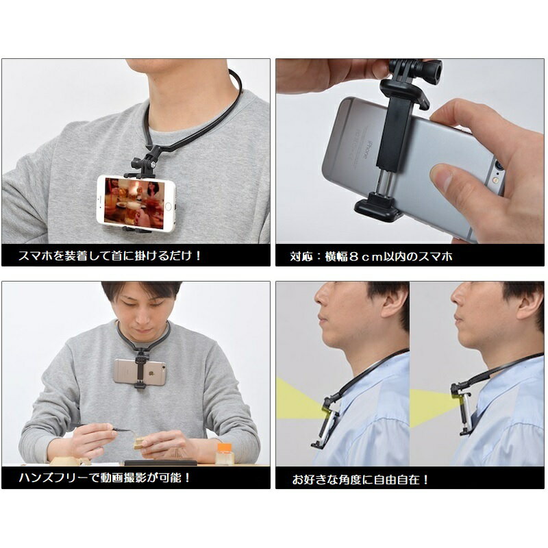 [ 送料無料 ]首掛け ネック スマホホルダー ハンズフリー 手ぶら 自分目線 手元 主観 撮影