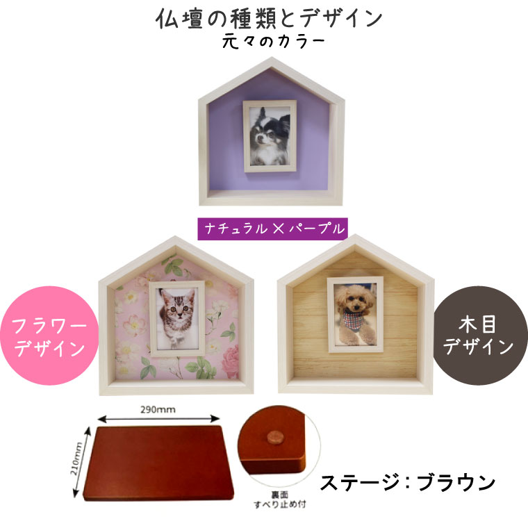ペット仏壇 メモリアルフォトフレーム ペットのおうち型 ハウスBOX フルカラープリント ナチュラル×パープル ステージブラウン 仏具8点セット 肉球おりんセットコンパクト ペット供養 はじめての手元供養 犬 猫 ペット仏壇 ペット仏具 手元供養 かわいい メモリアル