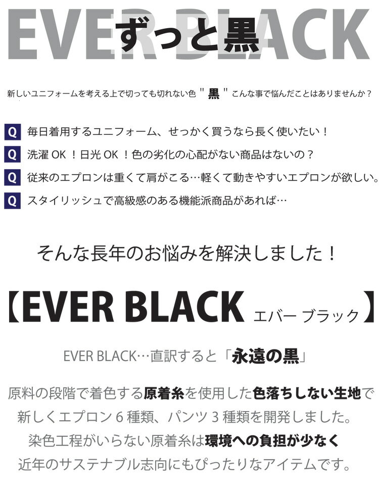 [エバーブラック]飲食サービス系ユニフォーム セブンユニフォーム エプロン CT2296 男女兼用 SEVEN UNIFORM 白洋社