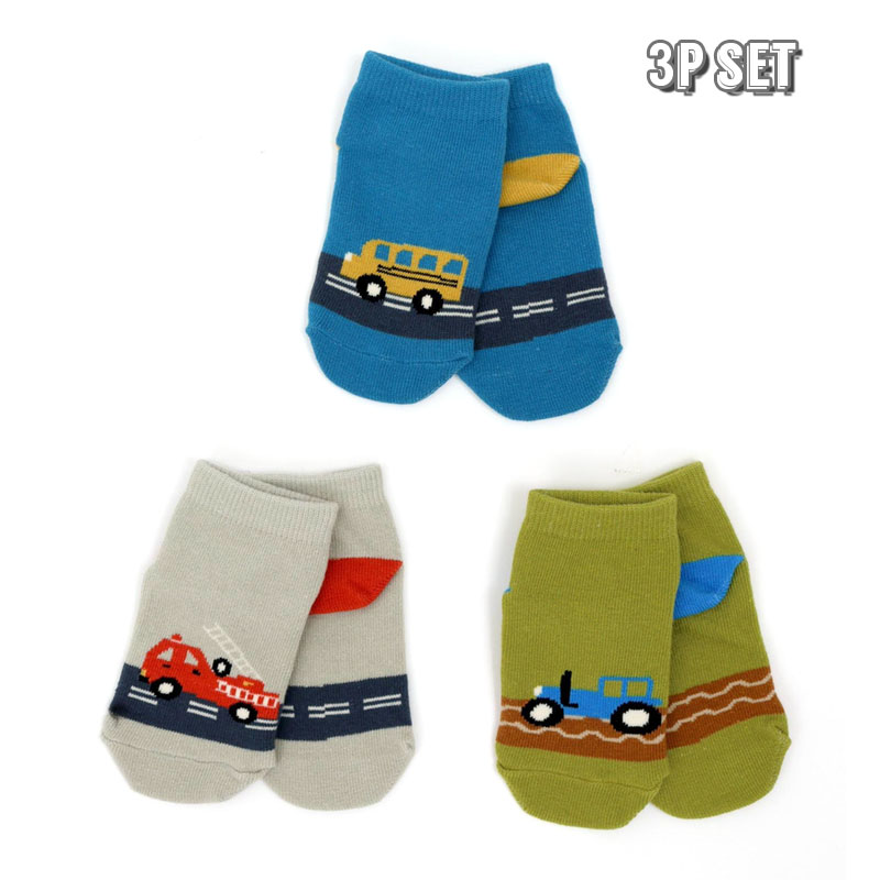 定番【stample/スタンプル】車デザイン アンクル ソックス_3足セット≪S/13-15cm M/16-18cm≫車 乗り物 子供 こども キッズ 靴下 男の子 ソックス 靴下 キッズ くつ下 子供服 通園 通学 可愛い 履きやすい 消防車 バス くるま 滑り止め 幼稚園 保育園