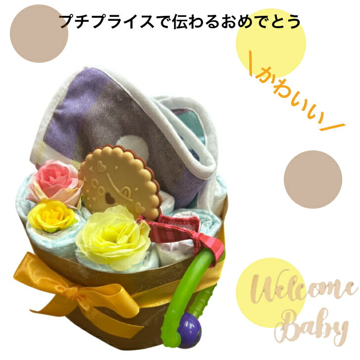 おむつケーキ 安い 出産祝い クッキー カフェ風 ナチュラル 可愛い 女の子 男の子 プチギフト オムツケーキ 出産祝 贈り物 プチプライス お手軽 歯固め 【送料無料】