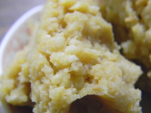 現在当店の本蔵にて発送の時が来るまでじっくりと熟成させております。食べ時は約4ヶ月後からになります。食べ時は仕込み季節、環境、室温などによって変わります。(冬期間をまたぐ場合は熟成に6ヶ月程度掛かる事が御座います。) 通常の手前味噌の約2倍の米麹で製造させて頂きました。おたまやではその年ごとに、職人の目で選んだ国産糀(こうじ)と国産大豆を使用しておりお客様の所で熟成中も失敗の無いように、職人の洗練された技で毎年安定したお味噌が出来上がるようにお作りしております。 ※到着後の貯蔵は暗所(台所、台所の収納庫)などで常温で熟成して下さい。 ※砕米麹や玄米麹(手前味噌シリーズ) 製品ではクサムネ(マメ科)黒・胚芽や玄米表皮などが入ります。仕込み直後の見栄えは良くないですが、食しても問題無く、熟成が進むにつれて目立たなくなります。 ※この製品は米こうじたっぷり19割麹甘口味噌で、ご自宅で4-6ヶ月貯蔵して頂く製品です。 名称 手前味噌 原材料 米麹(国産米)、大豆(国産)、食塩(国産) 内容量 10kg(ポリ樽詰め)重し塩、北海道産真昆布2切、取り扱い説明書1部、仕込明記シール、外蓋付き。 賞味期限 出来上がり後→賞味期限 1年※こちらの商品は品量が少ない為に出来上がり後1年の賞味となります。 保存方法 暗所保存 製造者 有限会社おたまや(山形県米沢市)