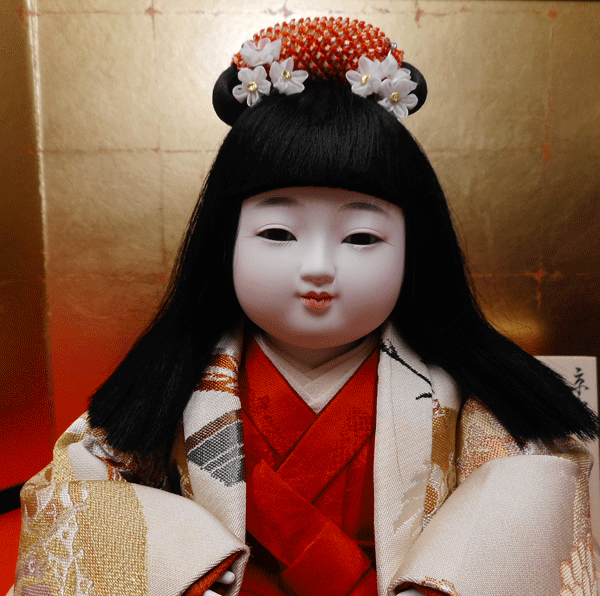 京頭(おぼこ)、京髪付 衣裳:時代裂 屏風:11号本金金沢箔屏風 京花(桜・橘)/貝桶(木製)/毛氈 飾りサイズ:約95cm(幅)×45cm(奥行)×33cm(高さ) 飾り方により 飾りサイズは変更出来ます。 京髪付、稀少なおぼこ(子供)頭で仕上げた雛人形です。 衣装に時代裂を使い作り上げた創作一品物の、洛齊作オリジナル衣裳人形です。 1点物につき 店頭で売れてしまうこともありますので ご了承ください。 *当店では 自然光での撮影をしております。 PCの画面によって 色に違いがある場合がございます。 又、光の具合で見にくい場合もございますが ご了承下さい。