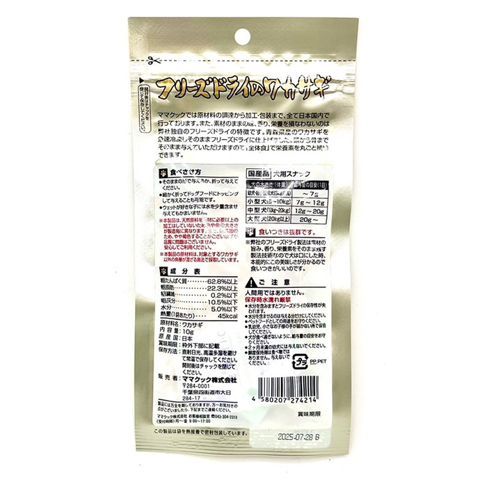ママクック フリーズドライ ワカサギ 犬用 10g (犬用おやつ)