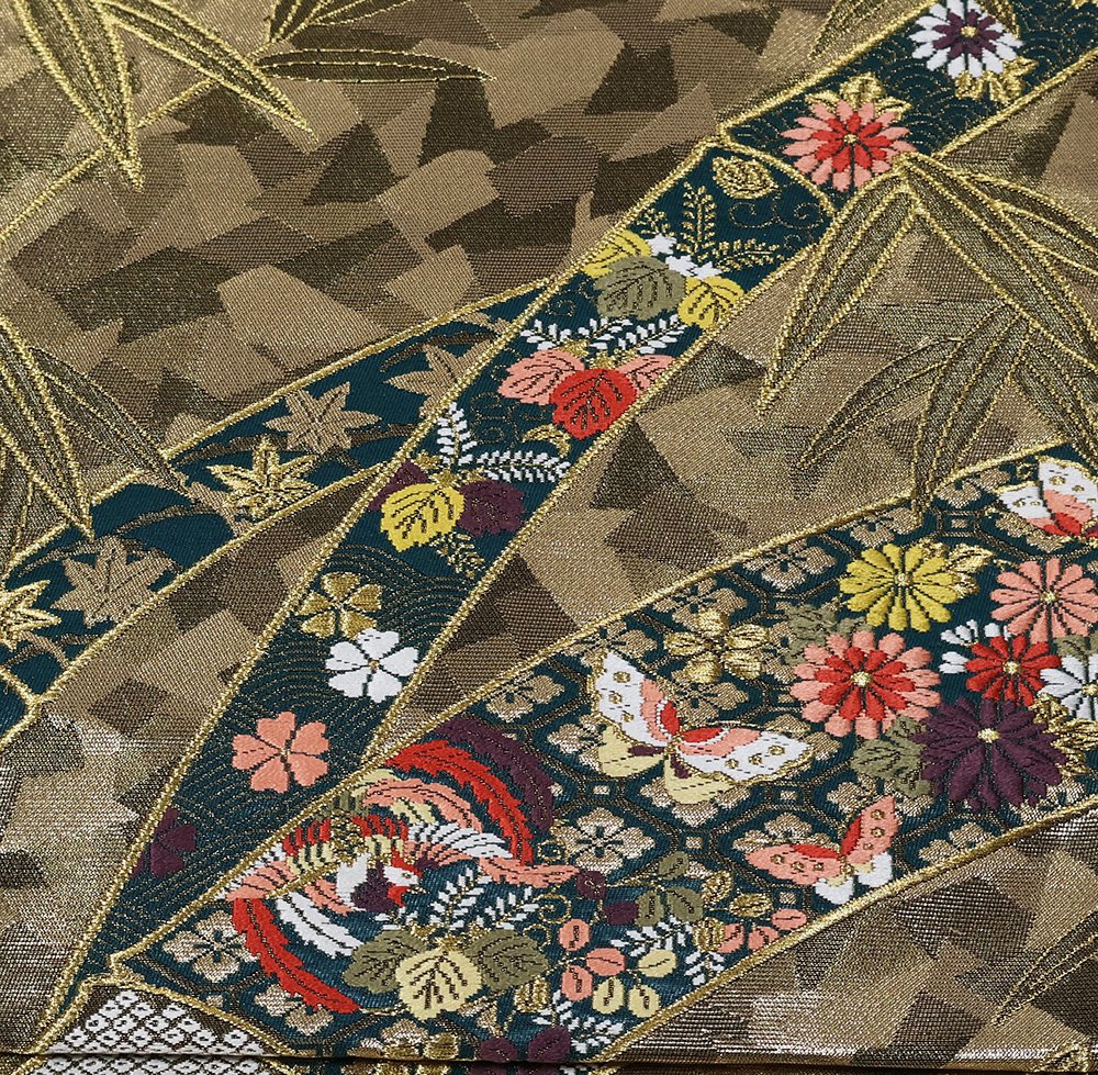 \ 20%offクーポン / \ 特売品 / 振袖用 袋帯 正絹 金 竹文 唐織 鳳凰 蝶 菊 桐 紅葉 桜 Mサイズ F7329 未使用品 成人式 レディース シルク ギフト フォーマル 最強翌日配送 送料込み