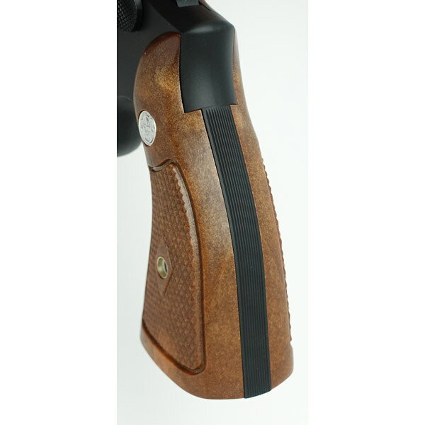 .38spl(スペシャル)弾を使用するリボルバー M10ミリタリー&ポリス(M&P)をベースに、 S&Wがこれまでに製造した中で最も優れた.38splリボルバーの1つと 評価されたモデルを再現したガスリボルバーです。 登場当初は「K-38」名称とされますが、戦後にM15のモデルナンバーが与えられ、 80年代後半までは警察や軍で広く制式に使用されるなど、 M15はM10とともにS&Wを代表する「軍・警察リボルバー」となりました。 テーパーのかかった細身の銃身にはエジェクター・ロッドを覆うシュラウドがなく、 ホルスターから引き抜く際に引っかかりにくく、 後の世に標準搭載となる斜めにカットされたフロントサイト、 低めの可動リアサイトを備えます。 トリガーには滑り防止のセレーションが入り、 ハンマー形状はコッキングして構える機会が多いことから セミワイドを採用しています。 作動方式は、シリンダー内部に発射に必要なメカの大半を搭載した 非ライブカート式メカニズム「ペガサスシステム」version 3を搭載。 気温の変化に強く安定した動作が可能です。 作動方式:ペガサス式ガスガン シングル/ダブルアクション 全長:約 234mm 重量:約 660g 装弾数:約 13発 主要材質:HW材、亜鉛合金 ※掲載の商品画像、商品仕様などは生産時期により変更となる場合がございます。 予めご了承ください。 (ガスの種類・気温等環境により著しく初速が変わることもございますのでご了承ください。)