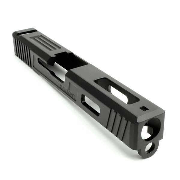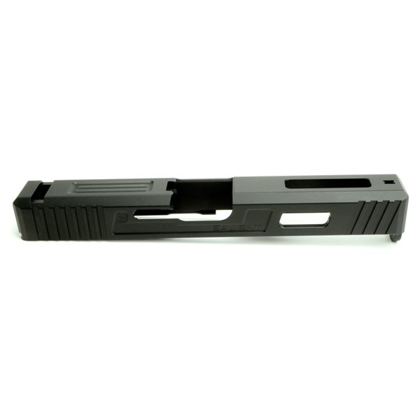 アメリカ実銃メーカーSalient Arms Internationalのスライドを再現した、 東京マルイ ガスブローバック G17 3rd、G22用の金属製カスタムスライド、バレルセットです。 実銃でSAIより販売されているグロックカスタムパッケージである Tier 1モデルの特徴的なスライド形状を再現しており、 確実な操作を行える様に大きくカットされたリアセレーションと プレスチェックを容易に行える様に斜めにカットされたフロントセレーション、 軽量化と放熱を目的とした大きく開けられたウインドウカット、 4面ボックスフルート加工されSAIロゴと9MM刻印が施されたアウターバレル等、 実用性を重視した機能的なスタイリングをCNC切削加工で製作されています。 スライドはアルミ合金素材を使用したアルマイト処理、 アウターバレルはステンレス材に窒化処理を施し、 耐久性を高め、かつ金属の重厚な質感を表現しています。 ※フロントサイトは東京マルイの規格に準拠しますが、 リアサイトベースは設計上、より確実なリアサイトの固定を行える様に スライドとリアサイトの隙間をなくし、純正品と比較して取り付け穴が小さく作られています。 その為、東京マルイの規格に準ずるリアサイトは、 穴の大きさに合わせて取付け座を小さくする加工する必要があります。 ※東京マルイ製GBB グロック17 Gen.4以降のモデルは、 設計の違いにより取り付けできませんのでご注意ください。 ※取り付けるエアガンの種類や個体差によって、また対応するとされている場合であっても 取り付けやご使用には加工調整が必要となる場合がございます。