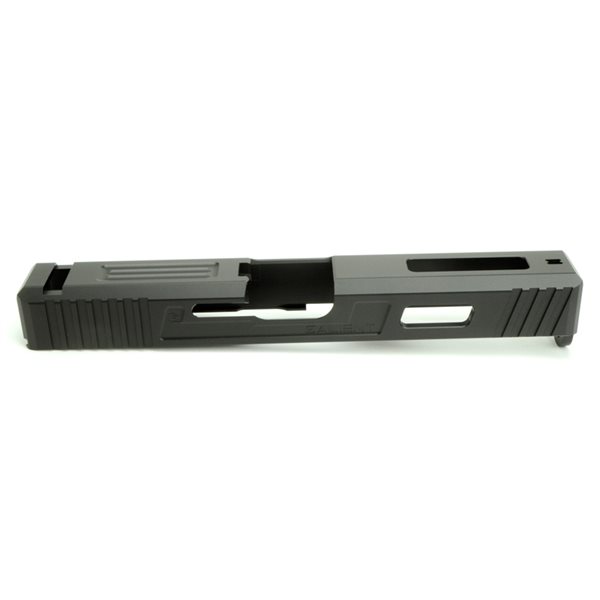 アメリカ実銃メーカーSalient Arms Internationalのスライドを再現した、 東京マルイ ガスブローバック G17 3rd/G22用の金属製カスタムスライド、バレルセットです。 実銃でSAIより販売されているグロックカスタムパッケージである Tier 1モデルの特徴的なスライド形状を再現しており、 確実な操作を行える様に大きくカットされたリアセレーションと プレスチェックを容易に行える様に斜めにカットされたフロントセレーション、 軽量化と放熱を目的とした大きく開けられたウインドウカット、 4面ボックスフルート加工されSAIロゴと9MM刻印が施されたアウターバレル等、 実用性を重視した機能的なスタイリングをCNC切削加工で製作されています。 スライドはアルミ合金素材を使用したアルマイト処理、 14mm逆ネジが備わったアウターバレルはステンレス材に窒化処理を施し、 耐久性を高め、かつ金属の重厚な質感を表現しています。 またセットでアウターバレル長に合わせた、内径6.08mmのインナーバレルが付属します。 ※フロントサイトは東京マルイの規格に準拠しますが、 リアサイトベースは設計上、より確実なリアサイトの固定を行える様に スライドとリアサイトの隙間をなくし、純正品と比較して取り付け穴が小さく作られています。 その為、東京マルイの規格に準ずるリアサイトは、 穴の大きさに合わせて取付け座を小さくする加工する必要があります。 ※東京マルイ製GBB グロック17 Gen.4以降のモデルは、 設計の違いにより取り付けできませんのでご注意ください。 ※取り付けるエアガンの種類や個体差によって、また対応するとされている場合であっても 取り付けやご使用には加工調整が必要となる場合がございます。