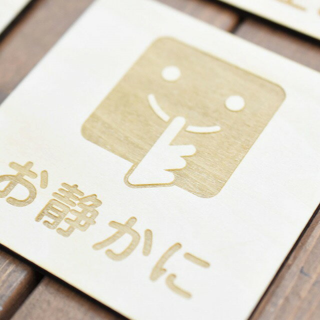 お静かに Bタイプ 顔マーク プレート 木製 ドアサイン 正方形 9x9cm 彫刻 インテリア 注意 警告 呼びかけ デザイン おしゃれ ピクトサイン 安全対策