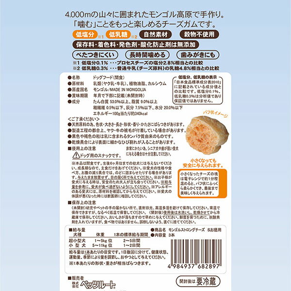 【6個セット】 ペッツルート モンゴルストロングチーズ お徳用 超小型犬 小型犬用 S 3本 ビーフ チーズ 本 小型品種 PetzRoute ペット用品 おやつ 無添加 ドッグ フード 成犬用 ペット 小型犬 個包装 グロッサリーフード 安心素材