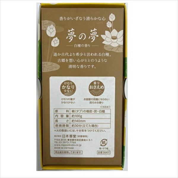 夢の夢 白檀の香り バラ詰 日本香堂 お線香 文房具 ペット 日用品 お墓参り ペットグッズ 仏壇 白檀 お仏壇 仏具 神具 ペット用仏具 キッチン 煙少なめ 煙少ない 文具 けむりの少ない 手芸用品 冠婚葬祭 宗教用品 線香 バラ詰め