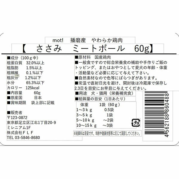【24個セット】 FLF mot やわらか鶏肉 ささみミートボール 60g 犬用おやつ キャットフード ペットフード ドッグフード プレミアム ウェットフード 犬のおやつ 犬用品 おやつ トッピング スナック 柔らかい 栄養補完食 国産 低カロリー 無添加 シニア 安心素材