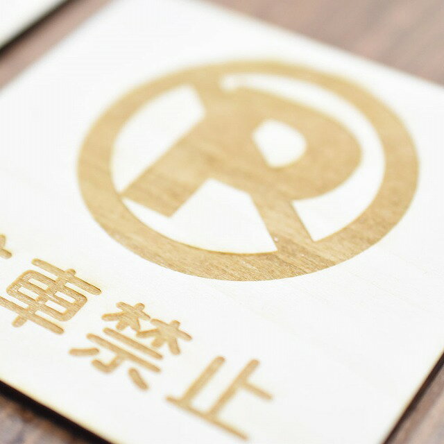 駐車禁止 プレート 木製 ドアサイン 正方形 9x9cm 彫刻 インテリア 注意 警告 呼びかけ デザイン おしゃれ ピクトサイン 安全対策