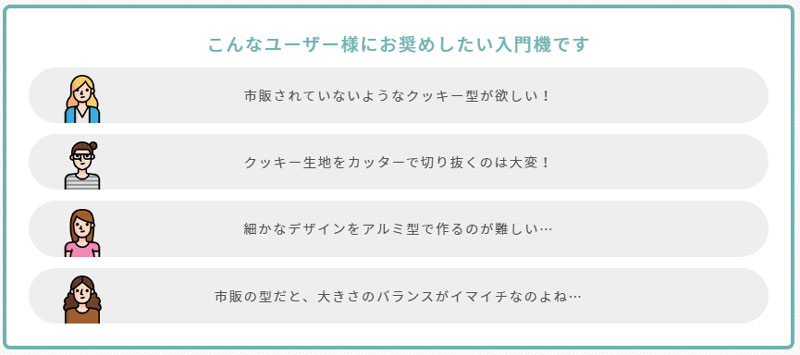 クッキー型を作るための 専用ソフトが付いた3Dプリンター ■キュートで魅力的なボディー ■手書きのイラストを使って全く3DCADやCGを使わなくても オリジナルのクッキー型を作成することもできるようになりました。 ■SDカードからPCに接続しなくても印刷可能です。 ■幅84mmx奥行き104mmx高さ110mm ■ニンジャボットクッキーは最近流行のアイシングクッキーなどの抜き型を 作成するための専用ソフトが付いた3Dプリンターです。