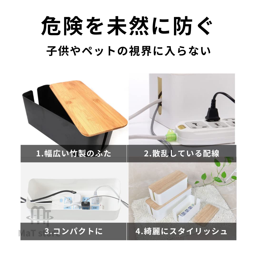 ケーブル収納ボックス ケーブル収納 木製 ケース ケーブルケース 配線 スリム (ホワイト)