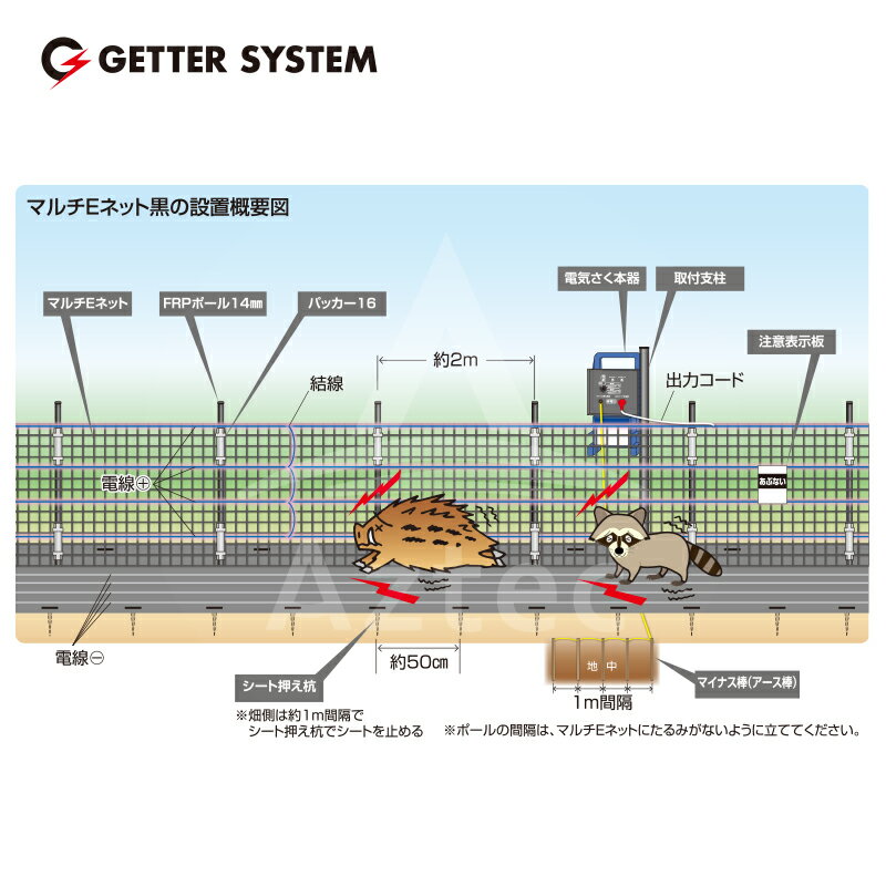 !!エントリーで最大100%ポイントバック!! 末松電子製作所 獣害用電気柵 マルチEネット黒100mセット 電気柵 屋外設置用 電気ネットとマイナスシート一体 No.943 法人様限定