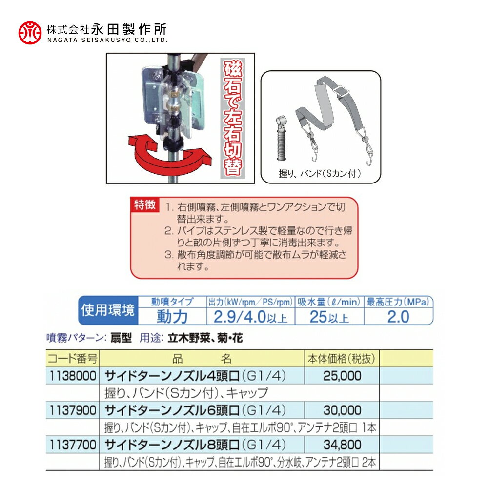 !!エントリーで最大100%ポイントバック!! 永田製作所 NAGATA 特殊ノズル サイドターンノズル6頭口 G1/4 動力タイプ4.0PS以上 1137900 法人様限定