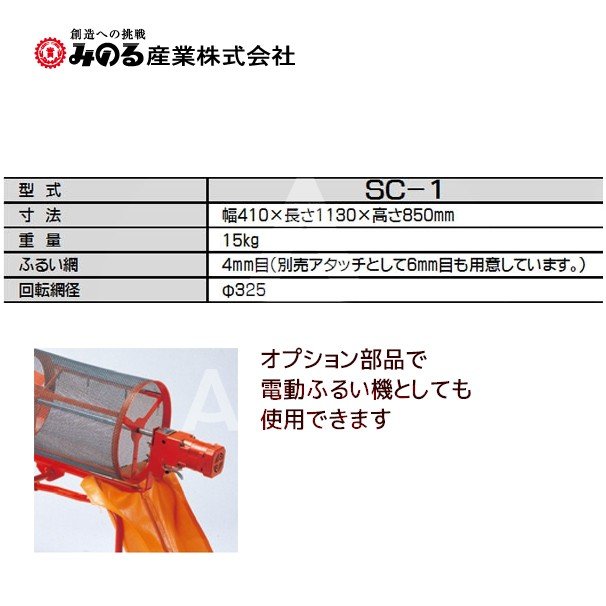 !!エントリーで最大100%ポイントバック!! みのる産業 回転ふるい機 SC-1 ふるい網4mm目+6mm目セット品