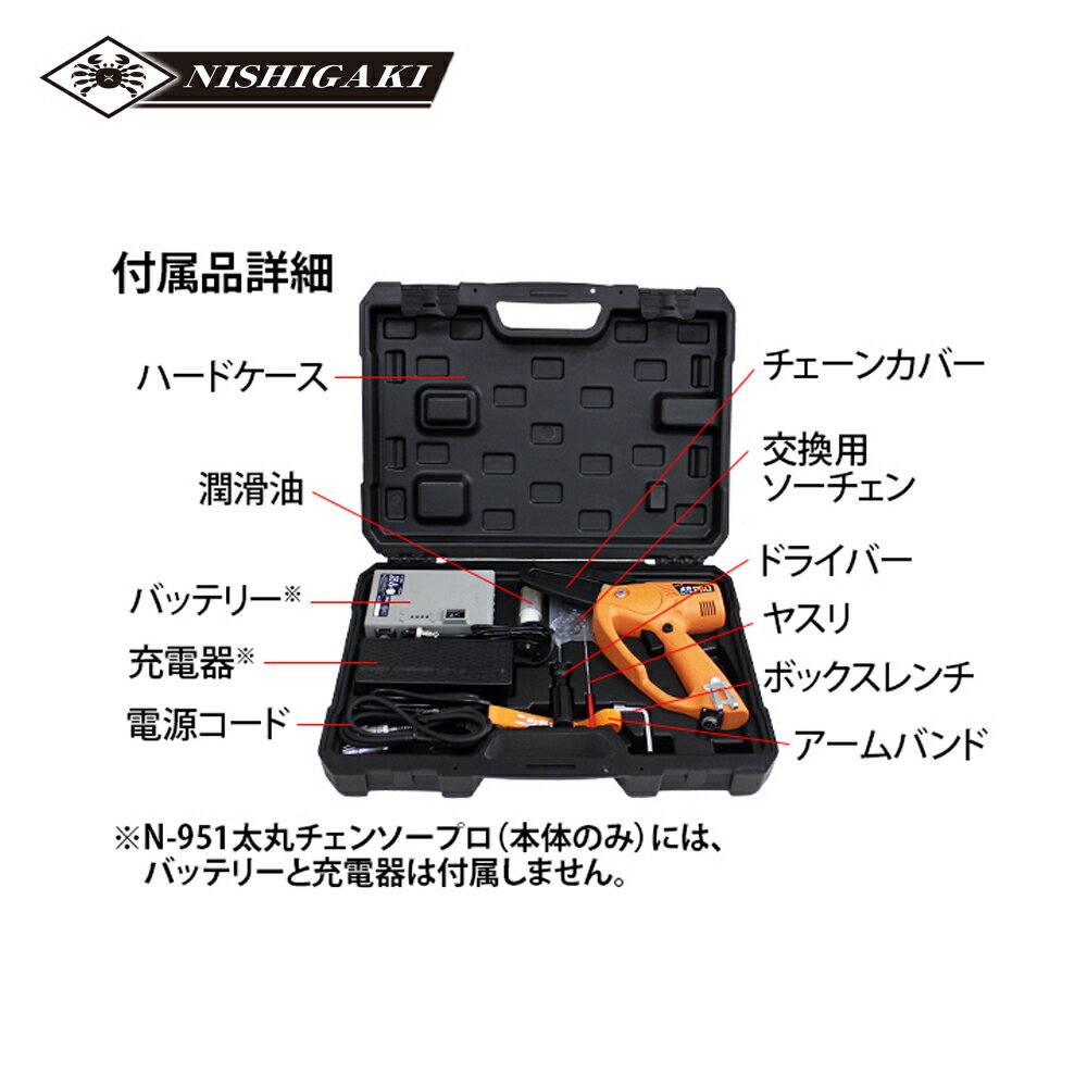 !!エントリーで最大100%ポイントバック!! ニシガキ 28.8V 充電式チェーンソー 太丸チェーンソーPRO バッテリ・充電器セット品 N-950