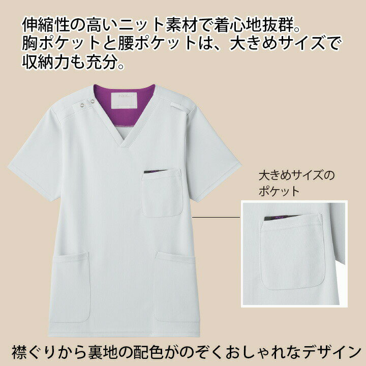 スクラブ ニットスクラブ フォーク 7095SC 半袖 男女兼用 メンズ レディース ストレッチ 透け防止 医療 医師 薬剤師 医療白衣 看護師 介護 病院 ナース FOLK ストレッチ ネイビー