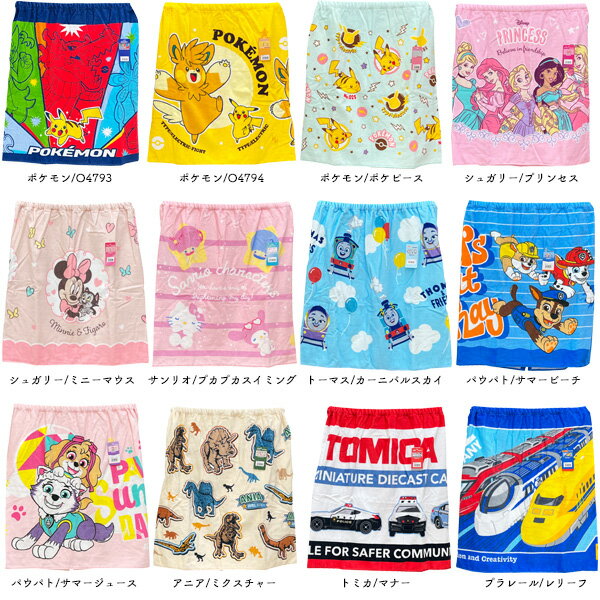巻きタオル 子供 60 ラップタオル 60cm丈 キャラクター プールタオル 水泳 林 タオル ポケモン ディズニー パウパトロール トミカ プラレール