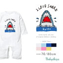 名入れ 長袖 カバーオール ロンパース [ SHARK ] さめ 鮫 サメ ファーストバースデー お誕生日 プレゼント こども服 キッズ ジュニア ベビー おそろい 兄弟 姉妹 リンク お出掛け 帰省 旅行 出産祝い パパ ママ NEW lr
