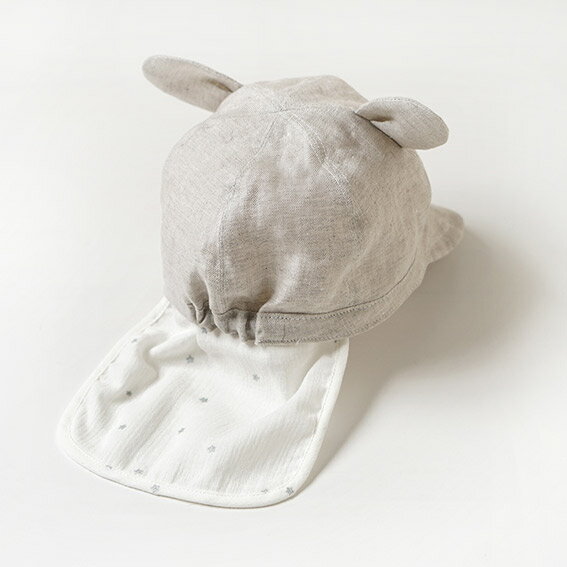 くまの耳をイメージしたアニマルキャップ シンプルなカラーながら、素材感を楽しめ、どんなお洋服にもあわせやすいデザインです。 男の子も女の子も着用できます。 後ろには取り外し可能な日よけ布がついており、日差しを遮ります。 肌あたりが柔らかな薄手の綿素材。 あご紐が付いているので、帽子が飛ばされてしまったり、落ちてしまう心配がありません。 素材はリネン100%で夏でもさらり。 【素材】 〈本体〉コットン86%(オーガニックコットン40%)、麻14% 〈日よけ〉コットン100% 【サイズ】頭囲44~48cm 【生産国】日本 ※北海道・沖縄県および離島地域へのお客様には別途送料が掛かります。お問い合わせの上、ご確認ください。